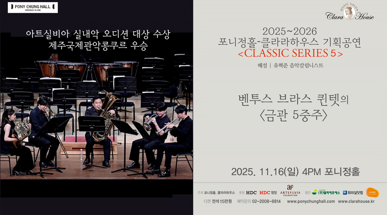 포니정홀-클라라하우스 기획공연 클래식 시리즈 5 - 벤투스 브라스 퀸텟 11월 16일
